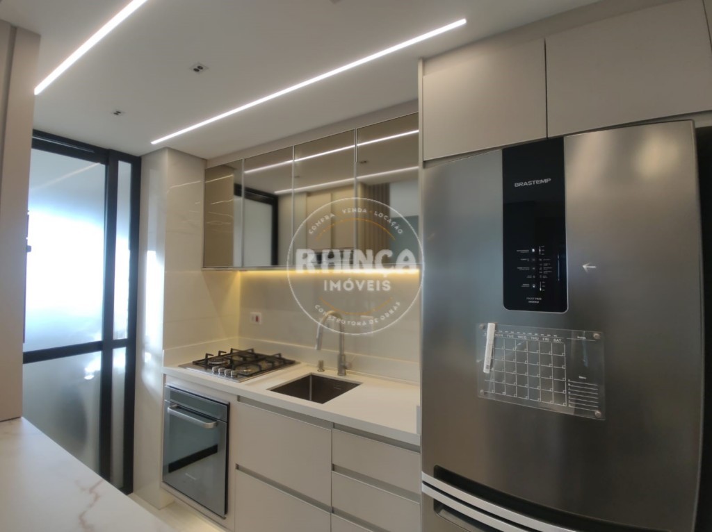Cozinha com armários planejados, pia e balcão em quartzo , cooktop 4 bocas, coifa de embutir Tramontina, formo elétrico 67 L, micro-ondas 40 L, Geladeira Frost Free inverse A+++ 447 L inox, todos os eletros marca Brastemp