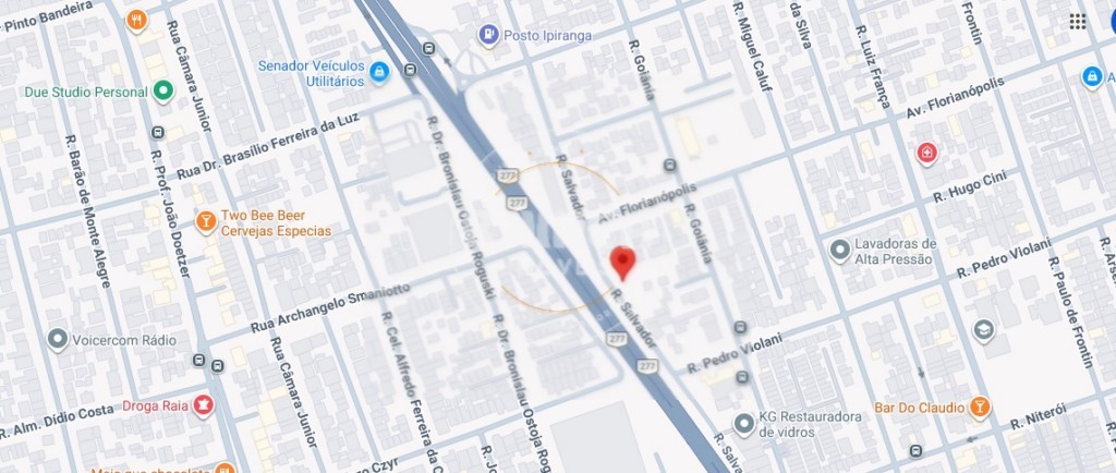 Frente para a BR 277 sentido Curitiba á 2,3 km do Shopping Jardim das Américas, quase ao lado da empresa Curitigran Granitos e mármores
